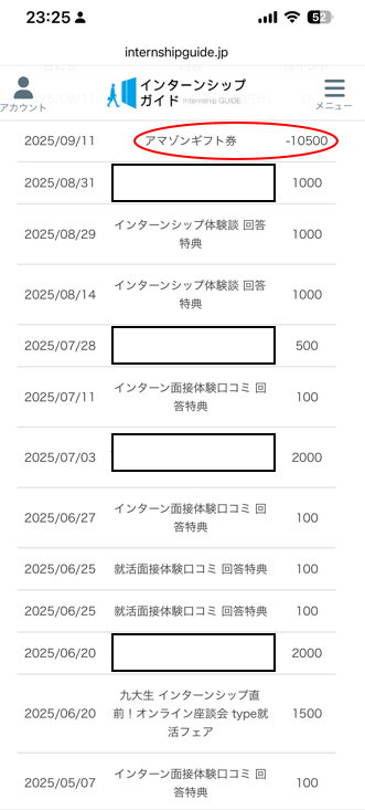 ここが意外と知られていない大きなメリットです。 自分が受けた面接やインターンの感想(体験記)を投稿し、承認されると、Amazonギフト券などで報酬(謝礼)を受け取ることができます。