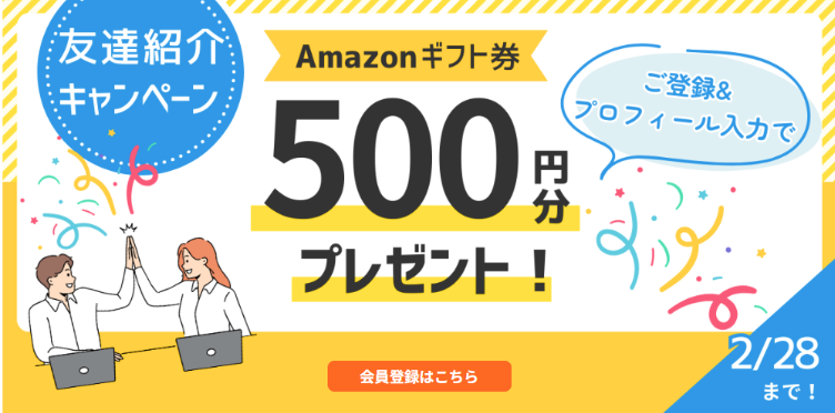就活会議は招待リンクから登録することで500円分のAmazonギフトカードがもらえるキャンペーンを実施しています。